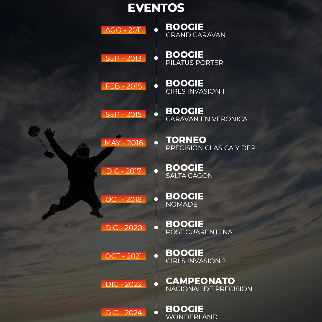 Fuimos y somos sede de eventos, campeonatos, camps de entrenamiento y récords nacionales, recibiendo paracaidistas de todo el mundo.