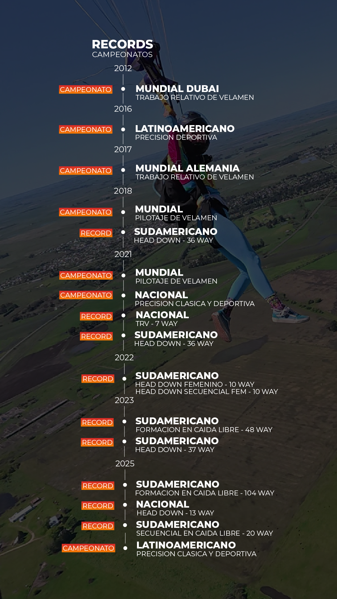 A lo largo de los años, muchas de las personas formadas en nuestra escuela continuaron su camino dentro del paracaidismo, participando en campeonatos, récords y eventos en distintos lugares del país y del mundo.